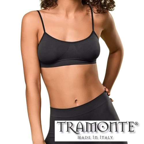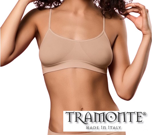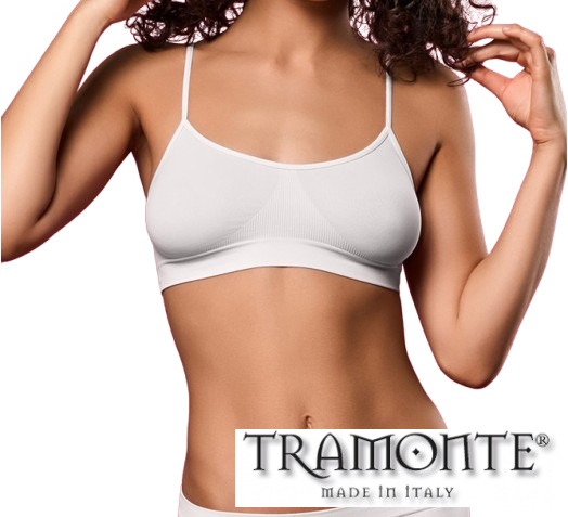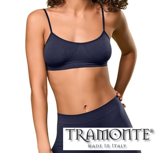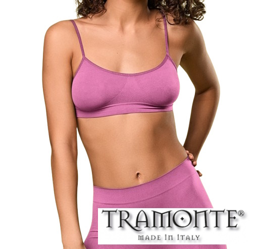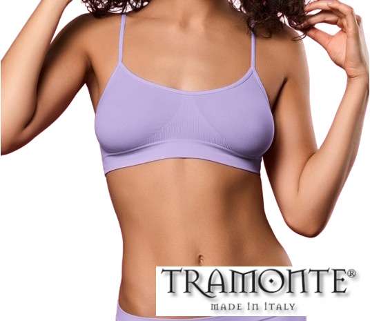 Brassiere TRAMONTE Art. 8003 in morbida microfibra con spallino stretto, adatta per palestra o come primo reggiseno per adolescenti. Disponibile in diverse tinte.