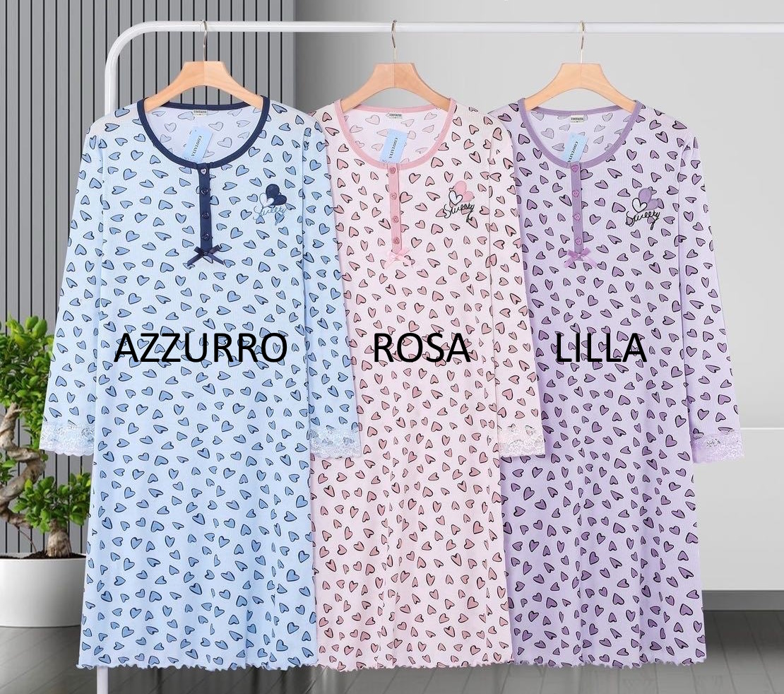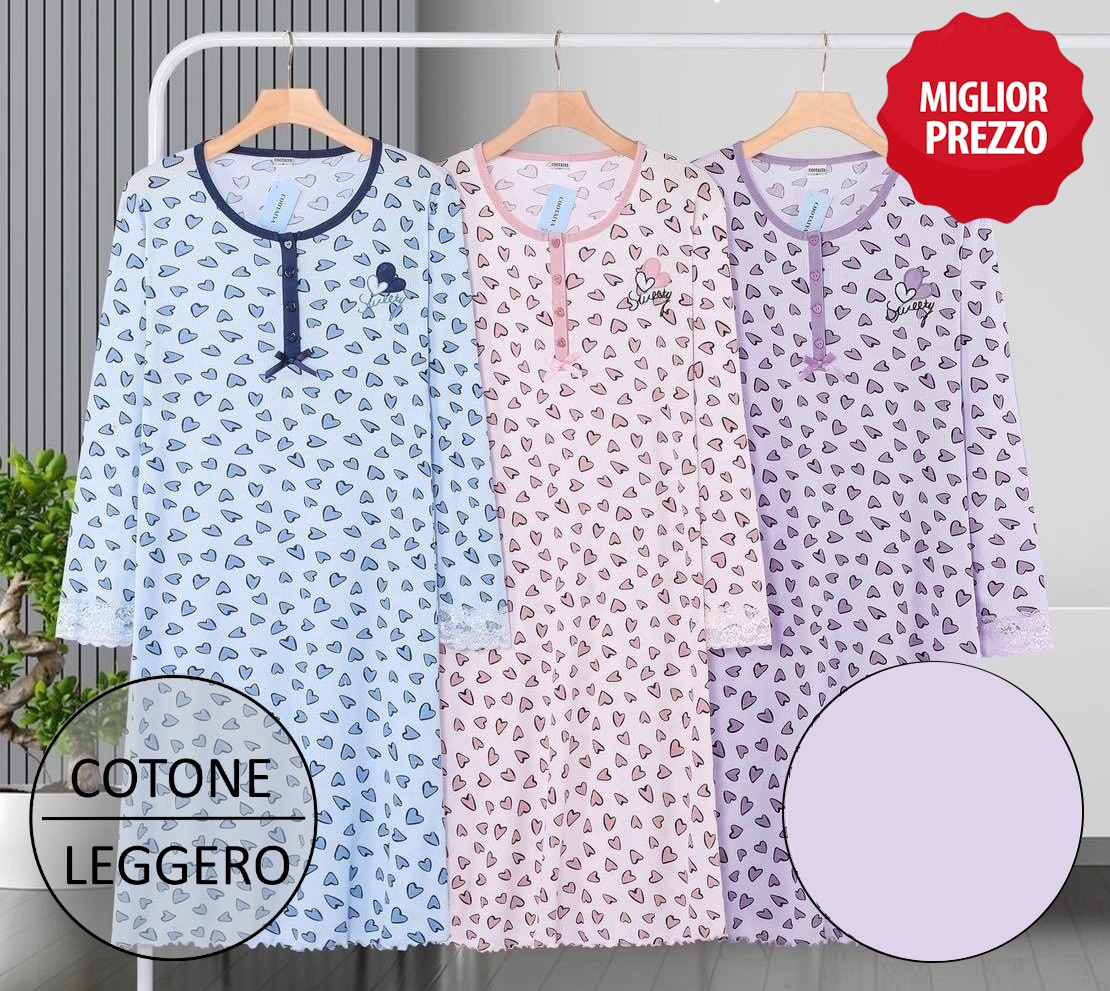 Camicia da notte donna manica lunga COOTAYA ART. 328-2 in cotone primaverile, con fantasia e colori come foto.
