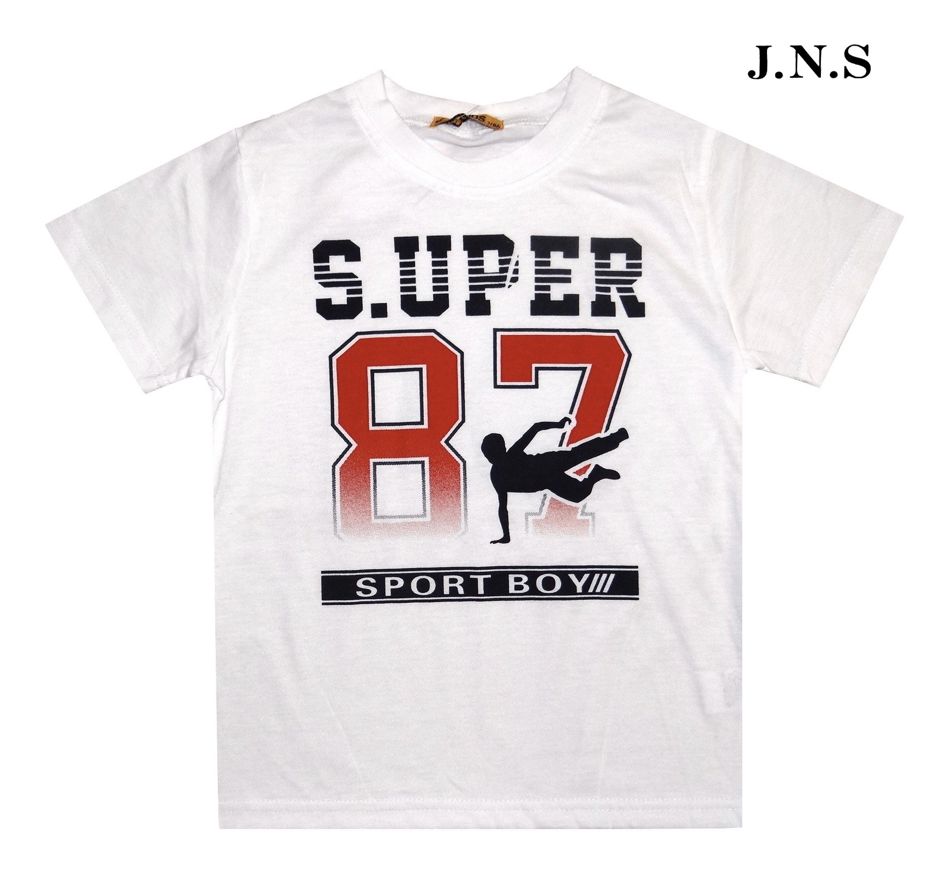 T-shirt bambino J.N.S. KIDS Art. 2006-3 in cotone, stampa sul davanti e colore come foto.