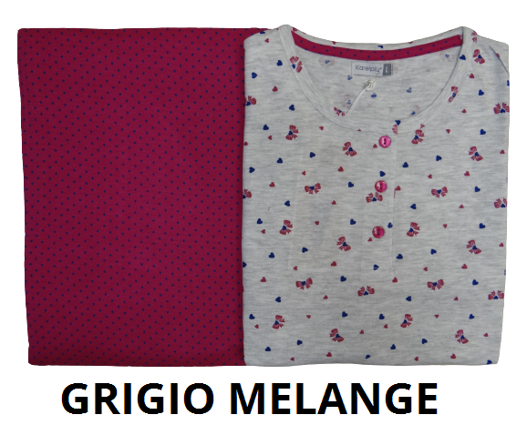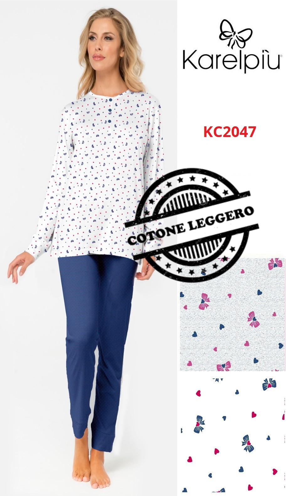 Pigiama donna manica lunga KARELPIU’ ART. KC2047 in cotone leggero, pantalone con polsino in fondo, fantasia e colori come foto.