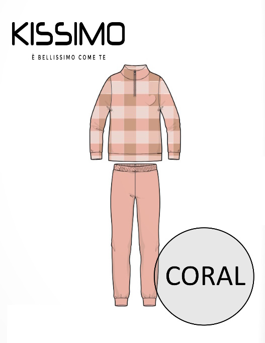 Pigiama donna manica lunga KISSIMO ART. 25D93022-2 in morbido CORAL, pantalone con polsino in fondo, fantasia e colori come foto.