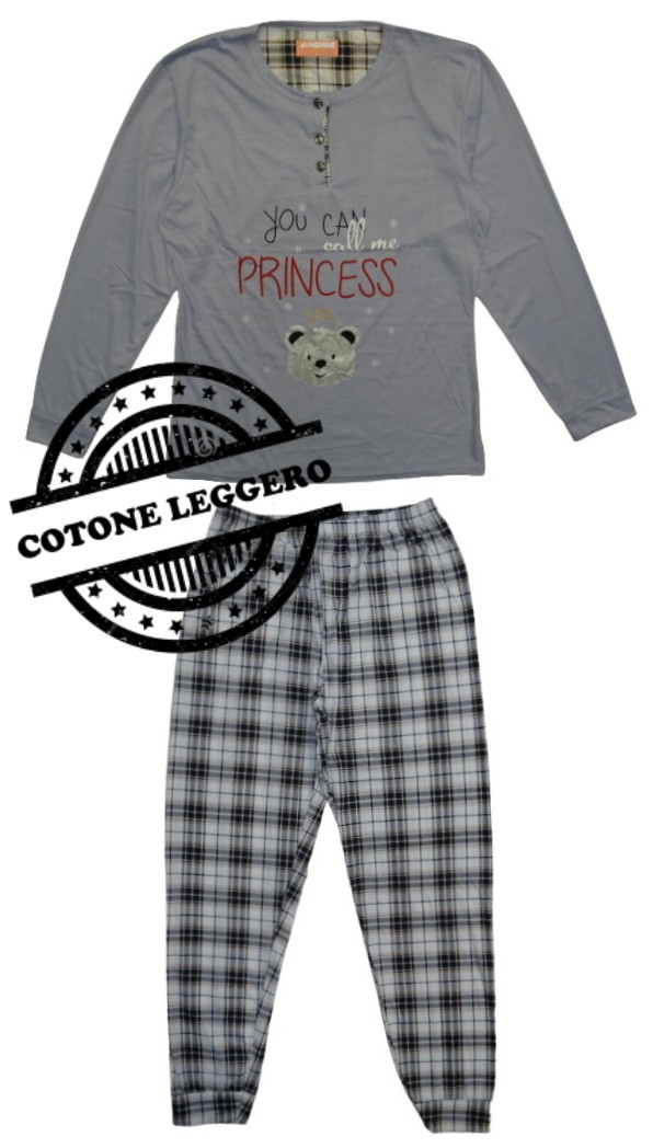 Pigiama donna manica lunga SUNSHINE ART. 6011-3 in cotone leggero, pantalone con polso, con fantasia e colori come foto.
