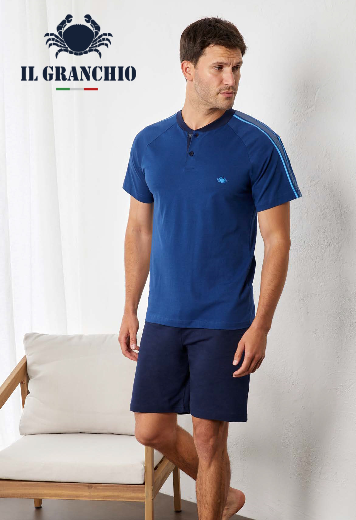 Pigiama uomo manica corta IL GRANCHIO ART. GP1157-1 in COTONE LEGGERO, pantalone bermuda, fantasia e colori come foto.