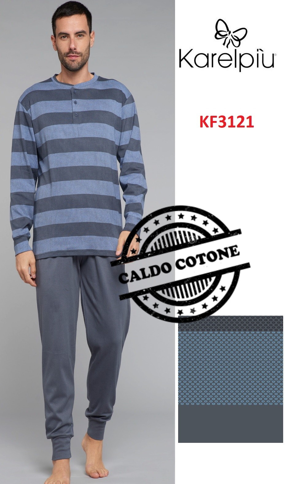 Pigiama uomo manica lunga KARELPIU’ ART. KF3121 in caldo cotone, pantalone con polsino in fondo, fantasia e colori come foto.