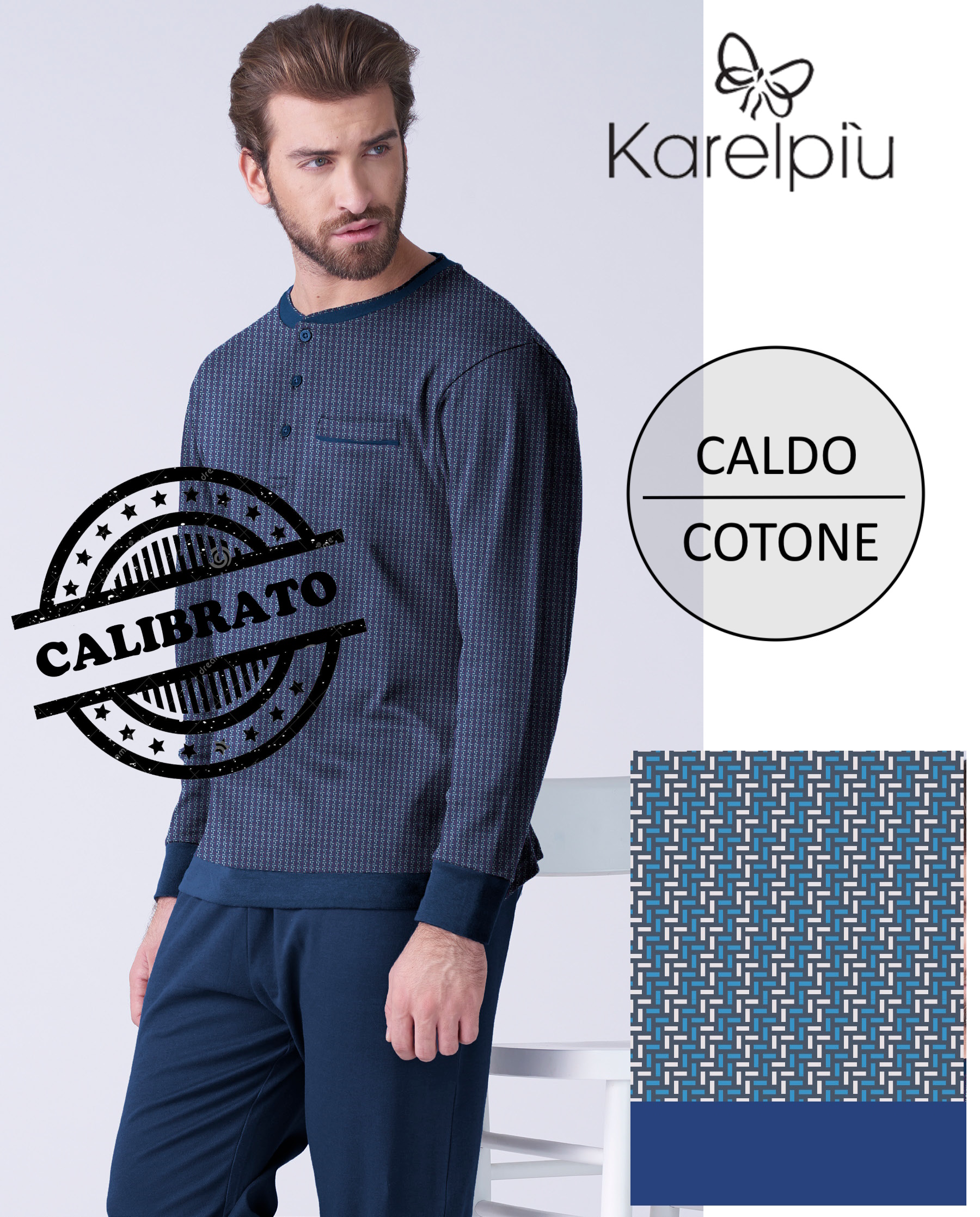 Pigiama uomo manica lunga KARELPIU’ ART. KF9305 in morbido CALDO COTONE, pantalone con polsino in fondo, fantasia e colori come foto. TAGLIE CALIBRATE.