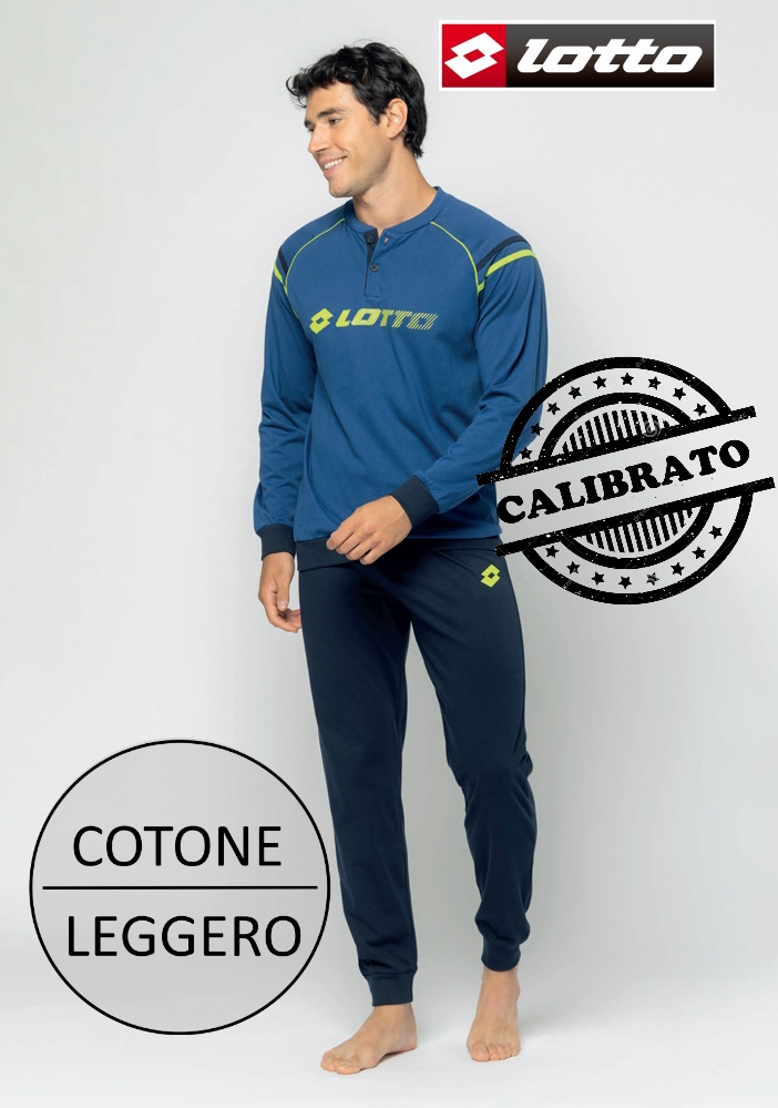 Pigiama uomo manica lunga LOTTO ART. LP1177C-2 in cotone primaverile, pantalone con polsino in fondo, fantasia e colori come foto. TAGLIE CALIBRATE.